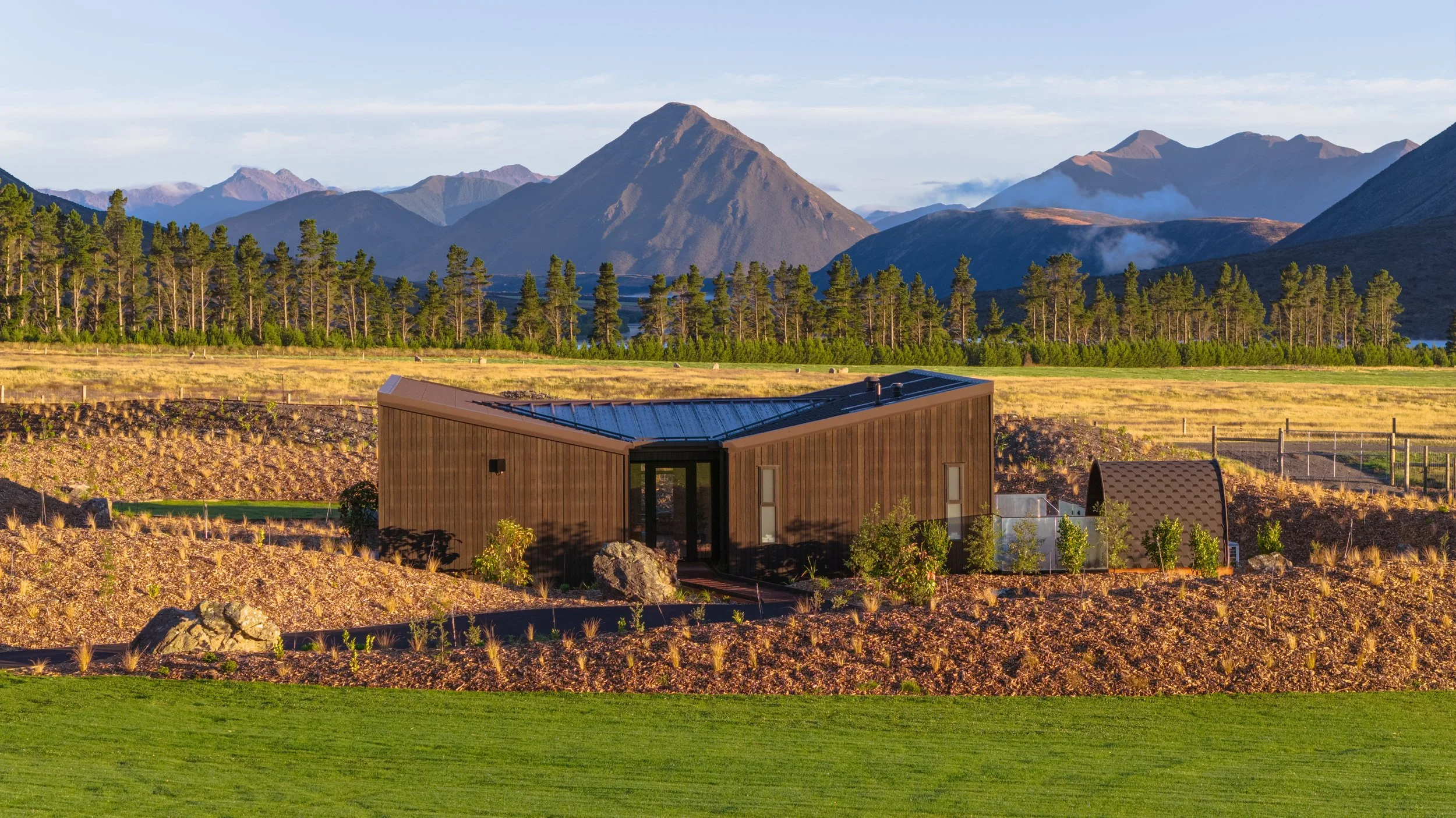 The luxury villas are meticulously designed to provide ambience, warmth, and a sense of tranquillity that invites you to fully exhale. Every detail has been considered - from pure wool throws and curated natural textures to sweeping alpine views and cosy, glowing fireplaces. The two suites within each villa connect to a sumptuous shared lounge, where you can rest and connect in spaces within the rhythm of the day.